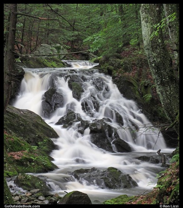 From the small pullout approximately here, a very short trail, probably less than 100 yards, leads to the waterfall. It appears that a number of vantage points are available, including from the other side of the brook, although I only had time to shoot from one.