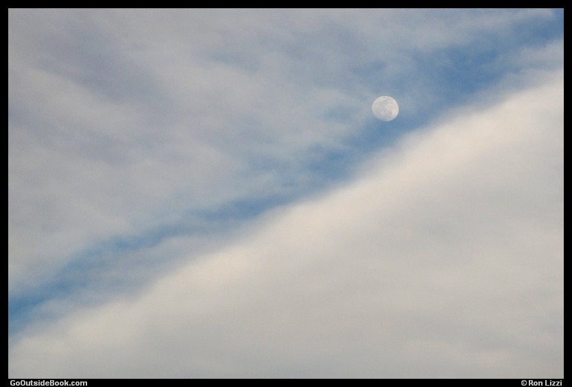 Gaze at the clouds and you might imagine all sorts of things. Here, the moon seems poised to roll down a channel through the clouds like a giant pinball.